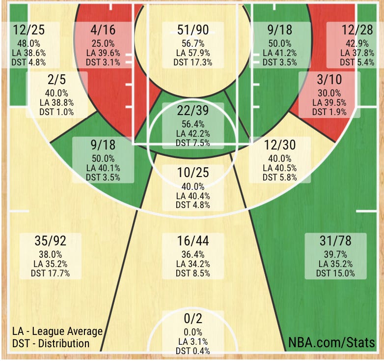Even though Kennard’s shooting numbers took a slight dip during the 2018-19 season, he would see career highs in points per 100 possessions and usage percentage, having 21 points per 100 possessions and a usage percentage of 18.1 percent, fifth on the Pistons roster behind Blake Griffin, Reggie Jackson, Andre Drummond, and Ish Smith.