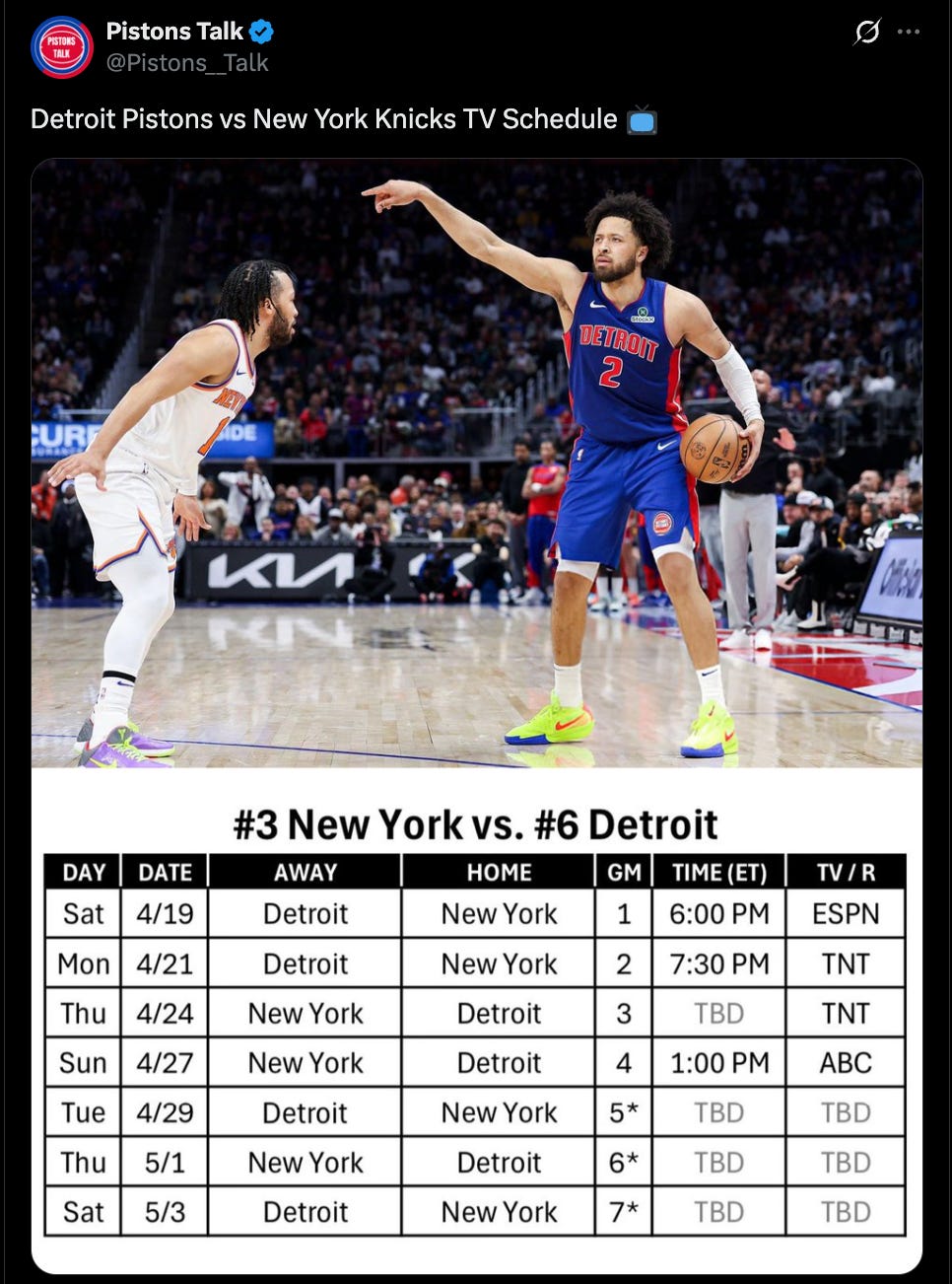 Our full playoff preview episode of the Palace of Pistons Podcast will release on Thursday morning. Follow us on Apple, Spotify, YouTube, or whereever you get your podcasts to tune into our in-depth series preview.
