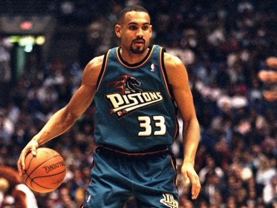 Grant Hill (Photo via - Andy Lyons/ Getty Images)After finishing a star-studded collegiate career at Duke, Hill's expectations were through the roof, even being touted to be the heir to Michael Jordan; and while no one can really compare to His Airness, Hill did not disappoint during his time in Detroit. Needing a successor to Isiah Thomas, who had recently retired prematurely after a struggle with injuries, the Pistons selected Hill at #3 in the 1994 NBA draft, and he justified their selection immediately, sharing Co-ROTY honors with Suns' guard Jason Kidd and doing everything for the team: scoring, distributing the ball, rebounding, and defending. Hill was then given the keys to the franchise, and did what he could with a team looking to work its way back to contention, leading Detroit to four playoff appearances in his six seasons before a blockbuster deal sent him to Orlando for the unknown commodity known as Ben Wallace. After being shipped south, Hill would battle injuries the rest of his career and would never build on the super-stardom he had gained in the Motor City. While he would never become the Hall-of-Fame caliber player that he was expected to be, he brought excitement and energy to the Pistons between the Bad Boys and Goin' to Work eras, and eventually became a key trading piece that acquired the heart and soul of the Pistons' defense throughout the early and mid-2000's.