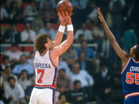 Kelly Tripucka (Photo via -Focus on Sport/Getty Images)When Tripucka burst onto the scene in Detroit in 1981, the scoring forward was quickly recognized as the newest star wing in Motown since Dave Debusschere, putting up averages of nearly 22 points and over five rebounds in just his rookie season. Coming into the league with star guard Isiah Thomas didn't hurt either, as the duo eventually made the team consistent playoff contenders after a couple seasons spent together. However, after five years donning Pistons' red, white and blue and the organization feeling like the franchise was ready to contend, the team shipped him to Utah for established superstar Adrian Dantley. After being sent west, Tripucka was never the same player, struggling with injuries in Salt Lake City before he was eventually forced into an early retirement. While he didn't stay for too long , Tripucka had some memorable years in Detroit and was an integral part of the team during the dawn of the Bad Boys era.