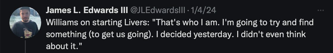 Ivey, for context, did all of the playmaking last season with Cunningham out. How Williams did not recognize and utilize that information is beyond me.